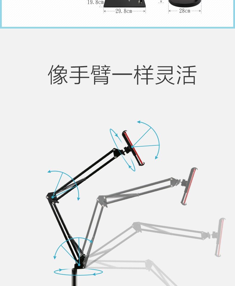 ipad支架落地air床头懒人多功能平板电脑手机架通用pad直播架子万能支撑架床上用折叠看电视神器加长桌面夹子
